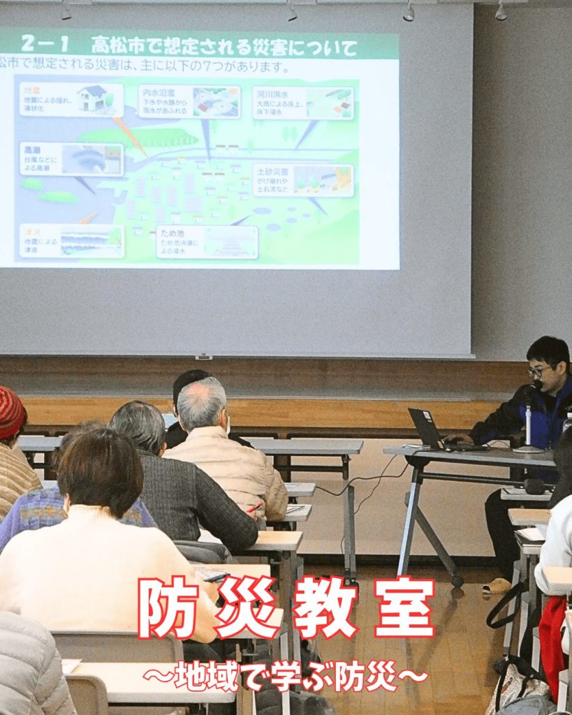 🟠今回は、昨年2月に作成された「高松市防災マップ」の作成を中心になって担当された 高松市危機管理課・佐藤地域防災係長 をお招きし、太田地区で想定される災害や、防災マップの“実際に役立つ使い方”について、具体的なデータを交えて分かりやすくお話しいただきました。
