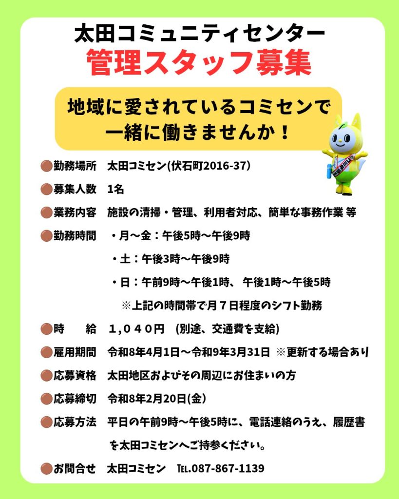 🍀太田コミセンスタッフ募集